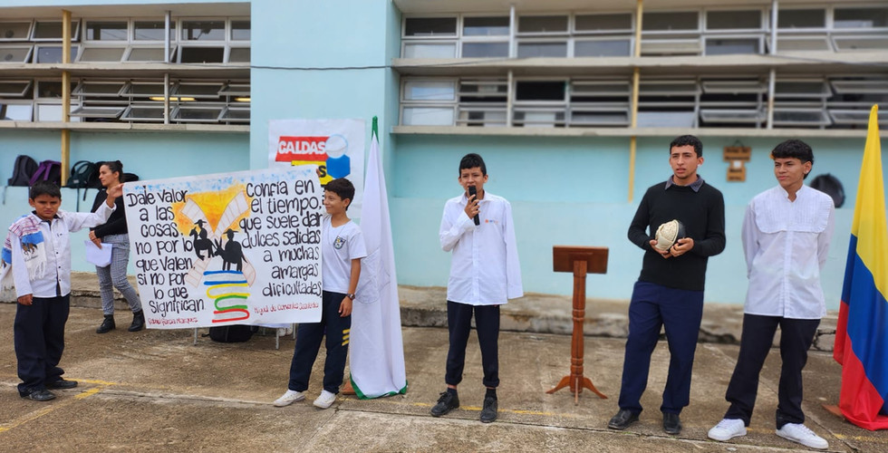 Within the framework of the Literacy project led by teachers Óscar Iván León, Andrea Arévalo and Angela Pérez, this April 23, Language Day was commemorated and the activity " Caldista Book Fair" was carried out, with the aim of building social fabric with democratic transparency, justice, respect, tolerance, freedom, pluralism and Caldista and Pandinense identity guaranteeing environments of healthy coexistence based on inclusion, happiness and well-being policies. This activity in which students from 6th to 11th participated, consisted of a protocol act that simulated a "Caldas News", showing the students' presentations and interviews alluding to this day.